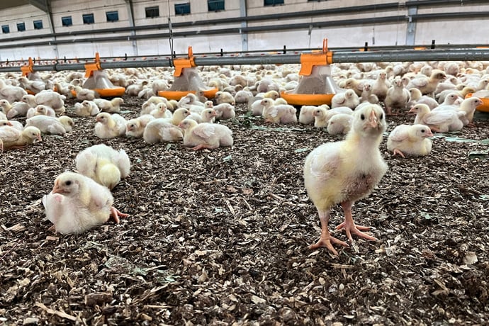 Vores landmænd modtager kyllingerne direkte fra rugeriet, når de er én dag gamle. Her passer de kyllingerne frem til slagtning. Vores landmænd lever ikke blot op til de formelle krav. De har stor fokus på dyrevelfærd og trivsel, så vi altid kan give vores kunder det, vi lover – kylling med omtanke.